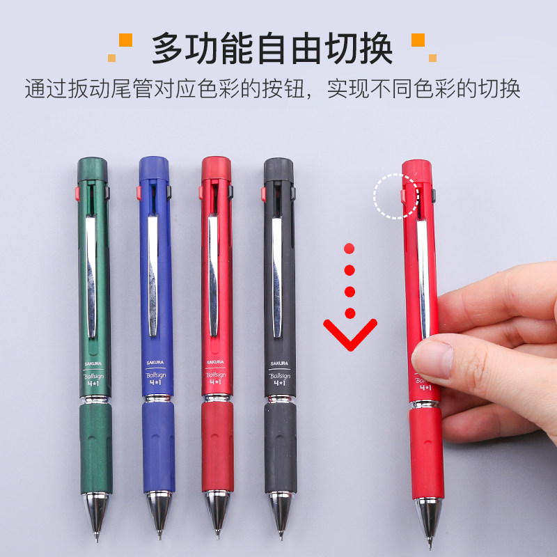 Japan imports cherry blossom metal multi-color ball pen multi-function color rotating pen atomic pen 0 4 red black Automatic pencil 0 5 tri-in-one retractable pen multi-color pen