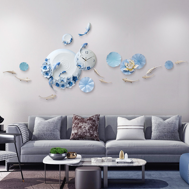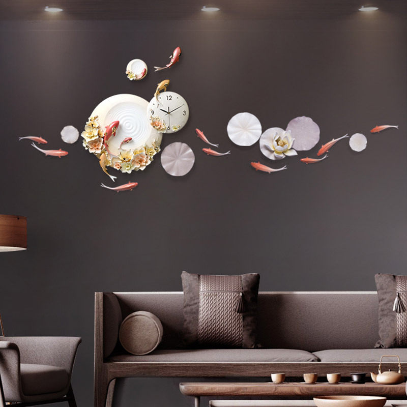 Creative China Wind Art Watches & Clocks Light Extravagant Living Room Wall Background Decoration Hanging Bell Clock New Chinese Wall Clock