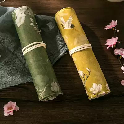 Mu dyed Chinese style creative pencil case Palace wind Palace flower crane ancient style pencil bag roll pen curtain stationery box