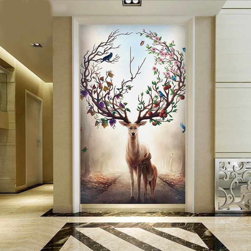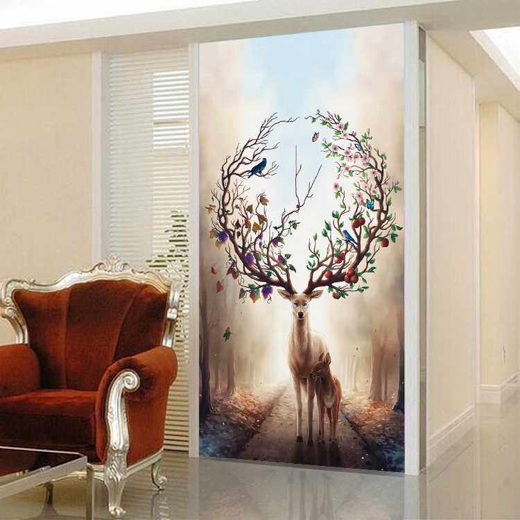 Modern home art glass entrance screen partition frosted double-sided light-transmitting living room background porch tempered elk