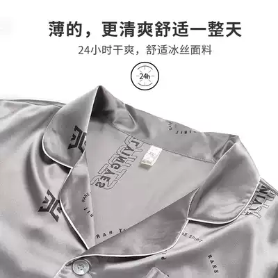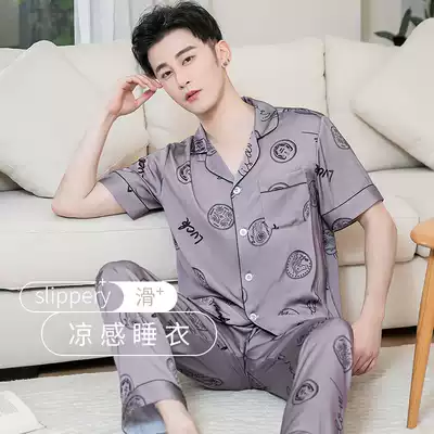 Shangzhe men's pajamas summer short sleeve Thin Ice Silk spring and autumn youth large size simulation silk summer home suit set