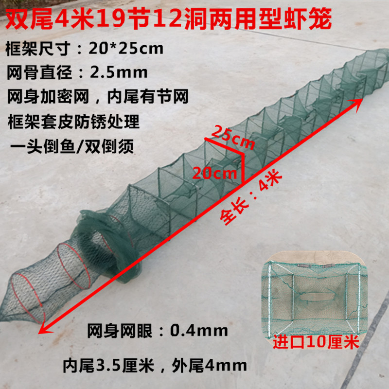 4 meters, 18 sections, 12 holes, all with sections, middle eyes, 4 meters, 19 sections, 13 holes, all with sections, big eyes, 4 meters, 19 sections, 12 holes, double-tail dual-purpose shrimp cages