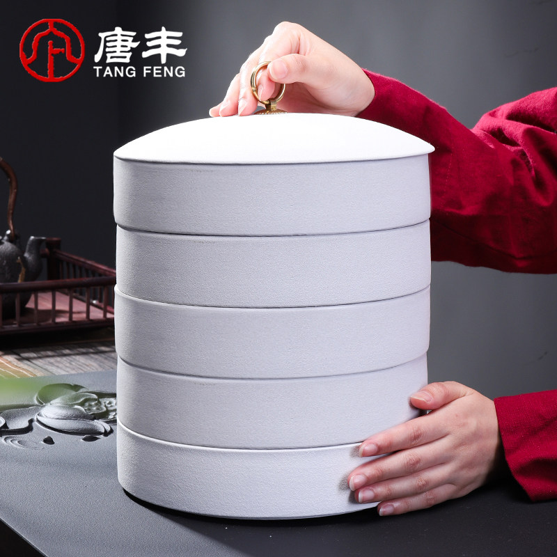 Tangfeng Pu'er tea pot ceramic multi-layer tea cake rack sealed wake-up tea pot tea cake storage box stackable storage tank Z