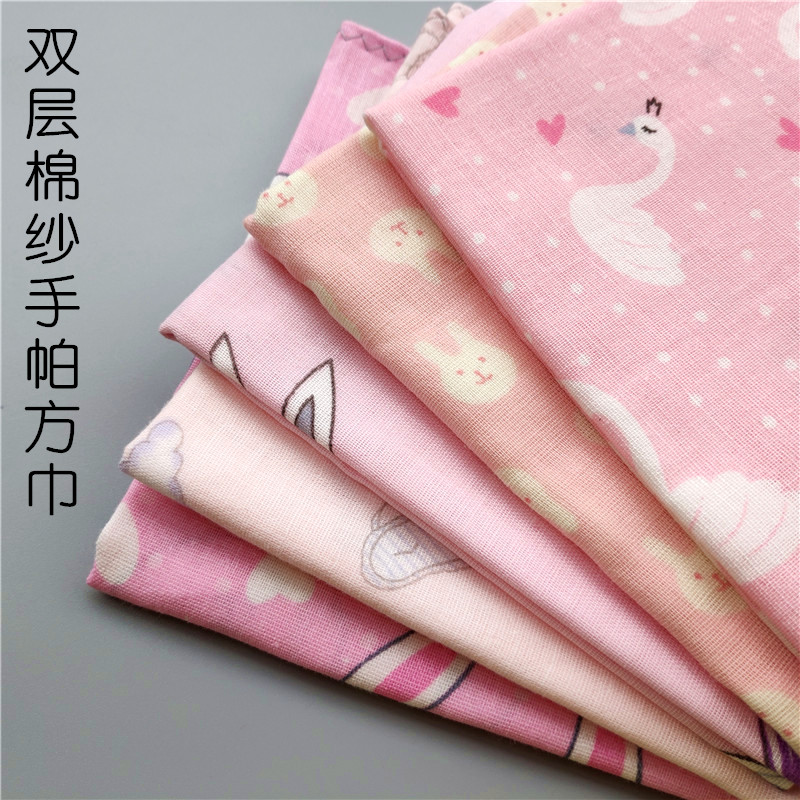 Cute pink rabbit handkerchief Soft cotton yarn sweat-absorbing small square towel female sweat-wiping handkerchief printed cotton small handkerchief