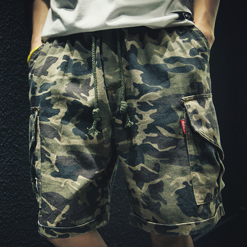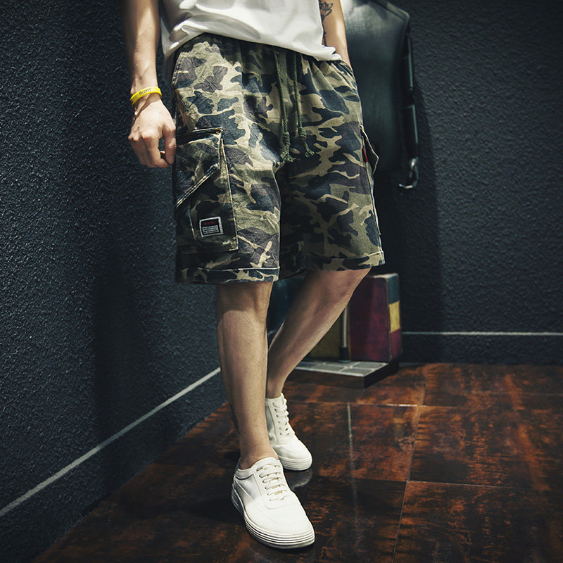 Summer Camouflay Tooling Shorts Male Loose Tide Signs casual retro trendy straight cylinder large size 50% pants 50% pants