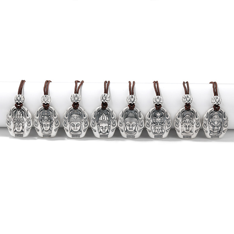 99 sterling silver year of the tiger natal year eight guardian gods pendant male and female twelve zodiac six-character mantra necklace natal Buddha