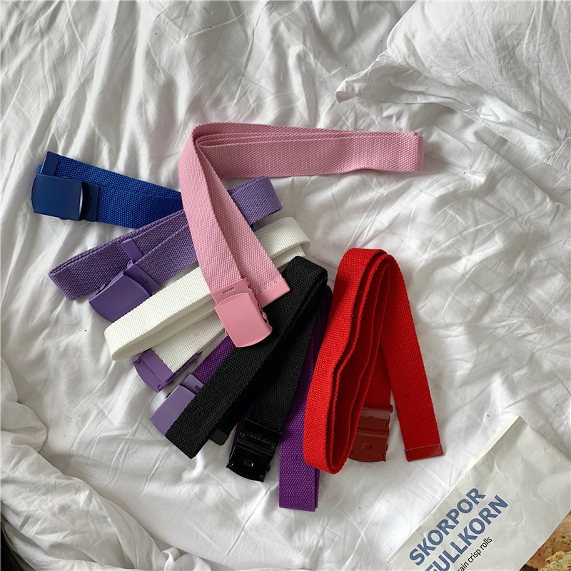Korean INS wind unisex smooth buckle casual canvas belt student tide solid color simple jeans belt