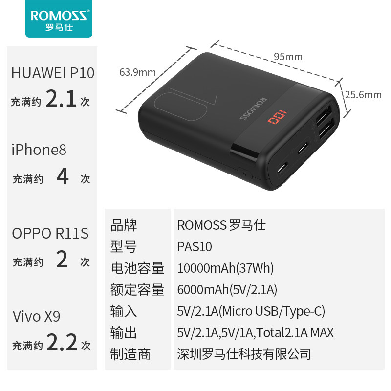 ROMOSS Roman Shi'e 10000 mAh mobile charging small portable mobile phone fast charging general action power supply