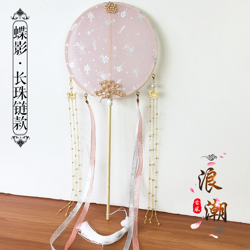 Ancient Wind Flow Su Fan Long Handle Group Fan Finished China Wind Classical Palace Fan DIY Materials Bag Hanfu Hollowed-out of LO