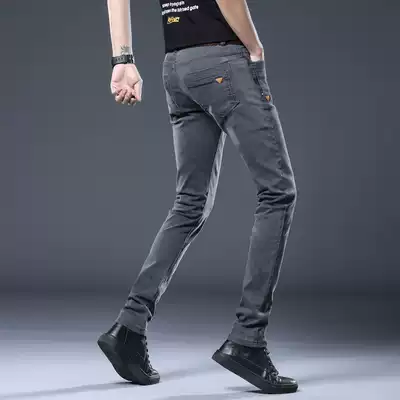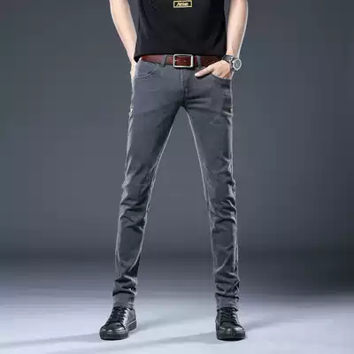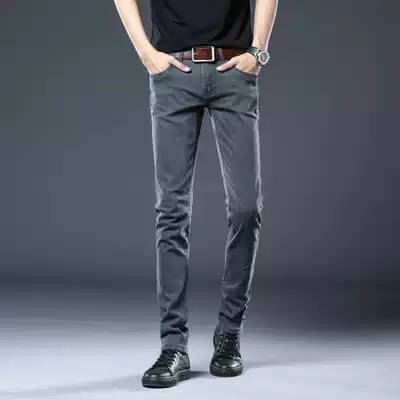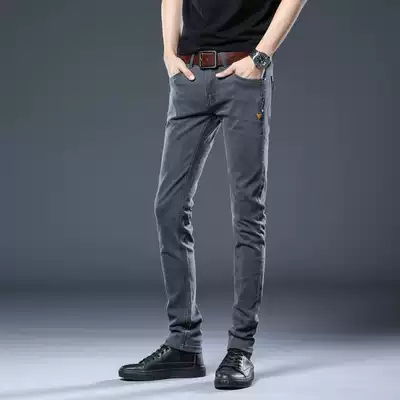 Autumn and winter new gray jeans men's slim feet stretch men's pants casual trousers youth Korean version of the Tide brand