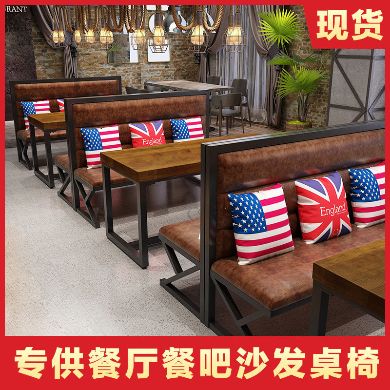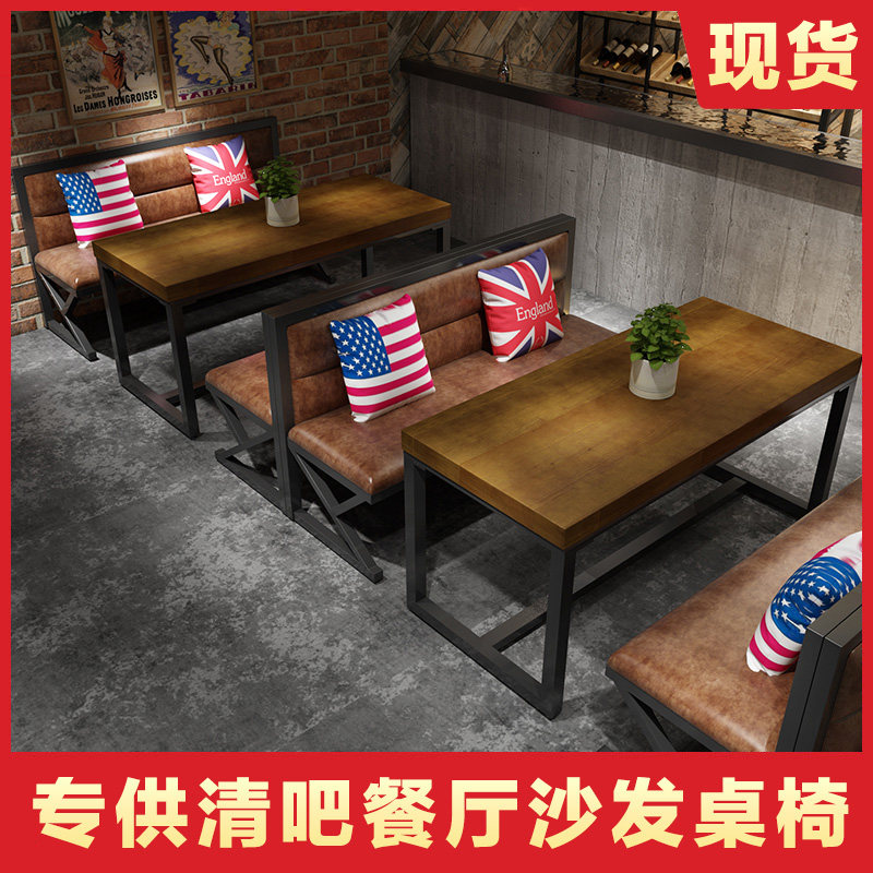 Retro Industrial Wind Dining Hall Cassette Sofa Commercial Barbecue Table Cafe Bar Music Clear Table and chairs
