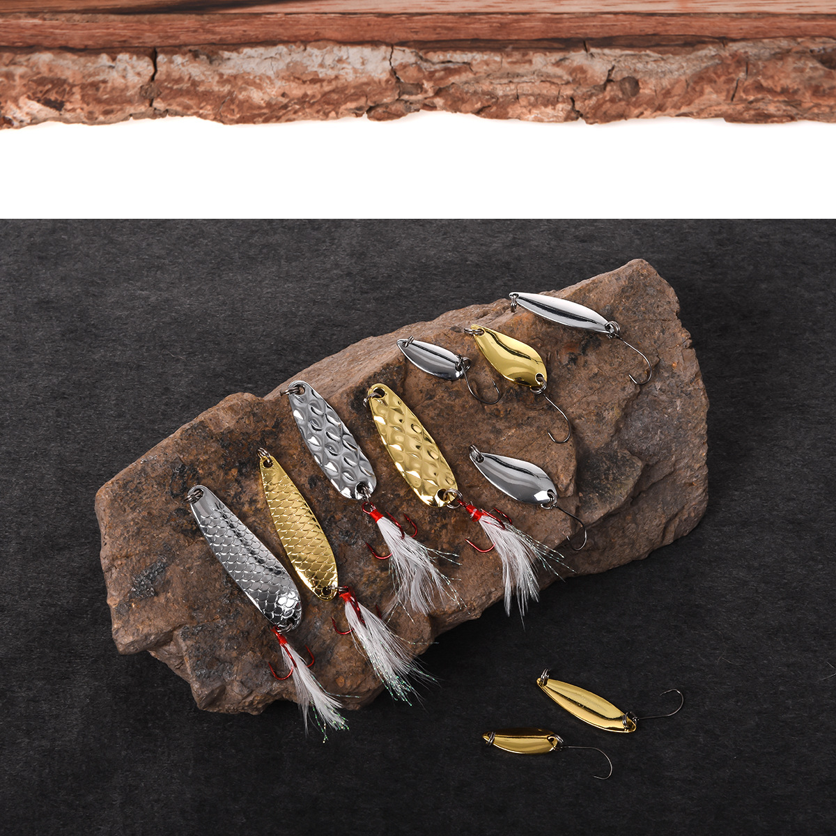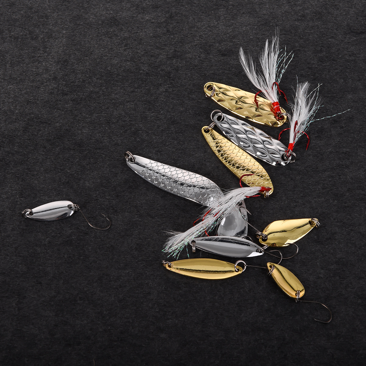 10 Boxed Sequins Set 5 Grid Spoon Bait Fishing Tackle Seabass Salmon Sequins with Feather Hook