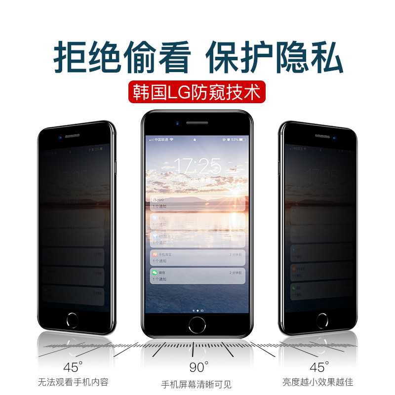 Apple 8 steel chemical film anti-peep iphone7 full screen cover 8p anti-steal gauge plus anti-peeking i7 Blu-ray 7p anti-peep head Glimpse Screen Full-bag edge 8 7puls Seven mobile phone touch and steal