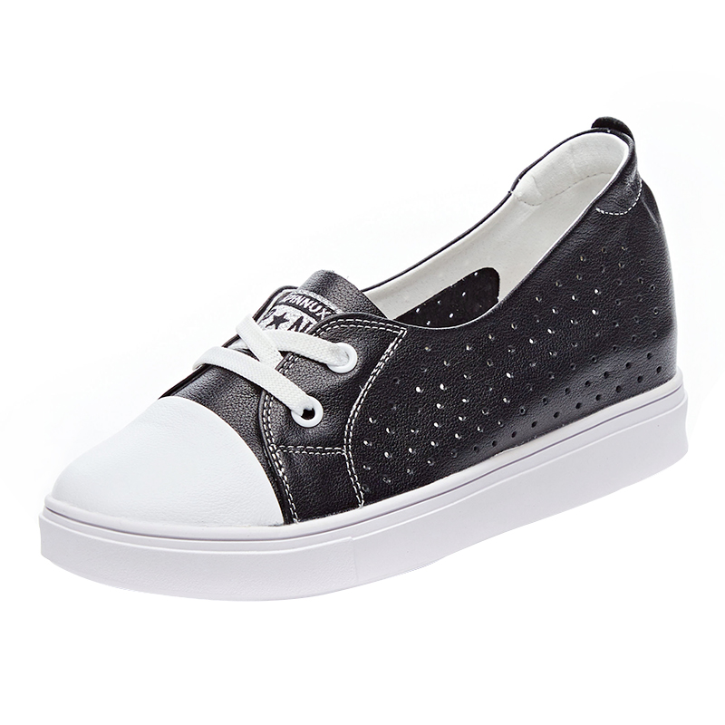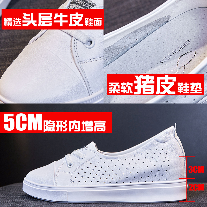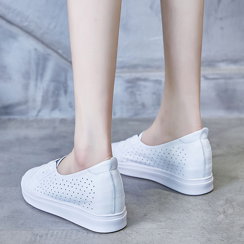 Shallow Mouth Little White Shoes Women's Summer 2022 New 100 Hitch Genuine Leather Shoes Hollowed-out Breathable Explicit Foot Small Inner Heightening Single Shoes