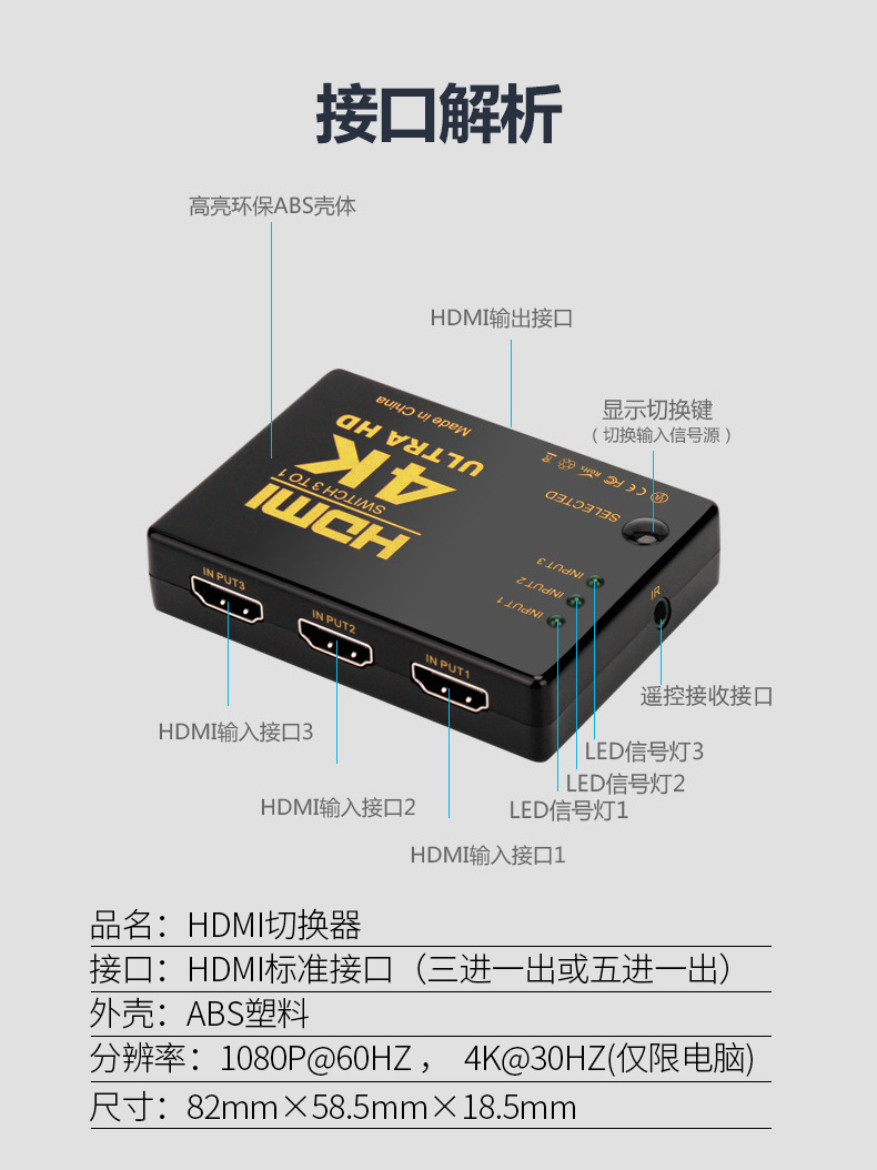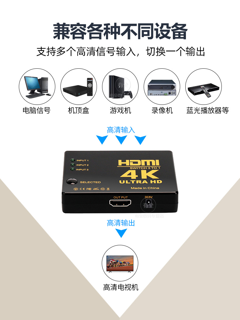 hdmi switcher triple further dispenser II 2 in 1 out switching TV screen soundHD remote split screen high-definition remote control split screen extension cord TV Three-in-one drag three 3 in-1-out switching