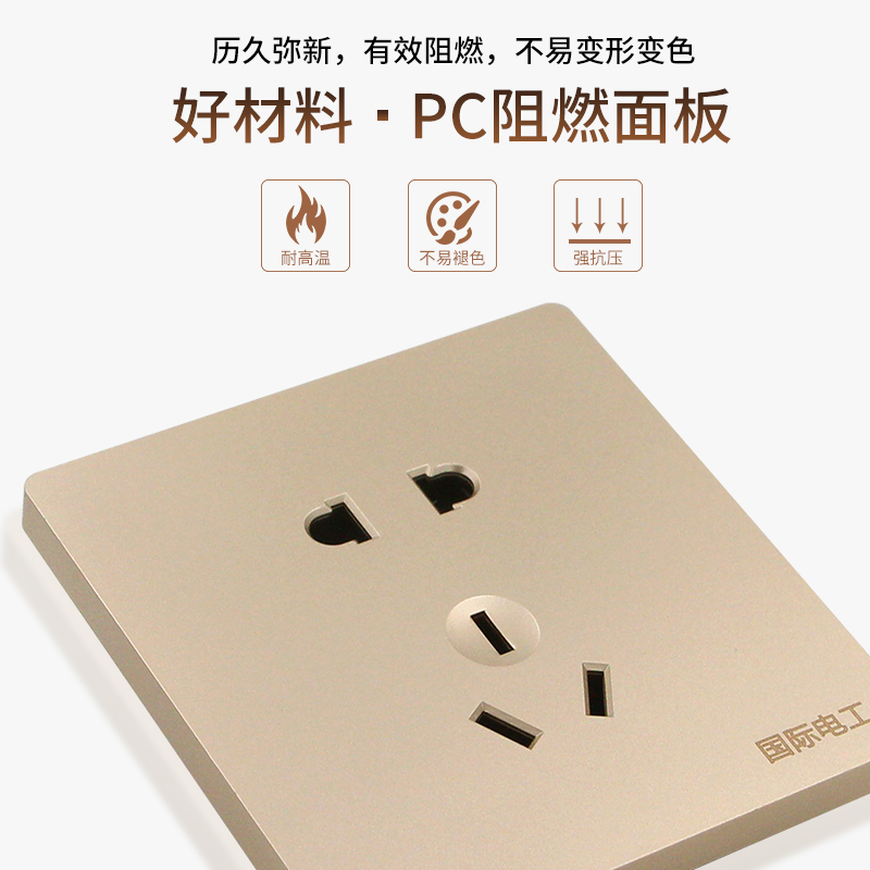 International electrician concealed type 86 champagne gold light switch socket panel 1 open one bill 1 joint single bill control