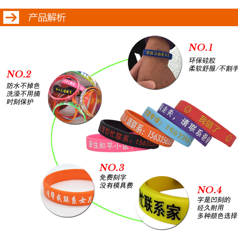 Mentally disabled elderly child anti-walking lost hand ring anti-loss lettering waterproof lost information card Silicone hand with new product