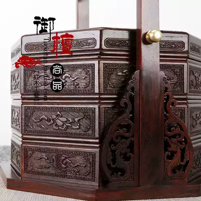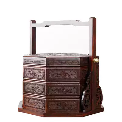 Big red sour branch basket Chinese retro layered food box mahogany snack box solid wood candy box with lid dried fruit box