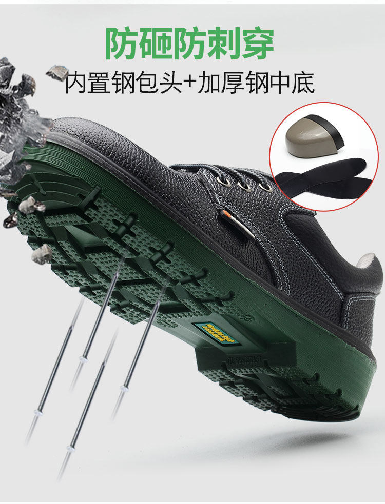 Labor insurance shoes men's summer steel toe cap anti-smashing anti-stab construction site work safety genuine leather shoes solid outsole old insurance shoes