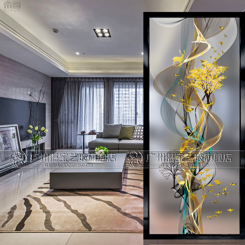 Art laminated glass screen partition porch background abstract European American moose landscape painting fortune tree transparent