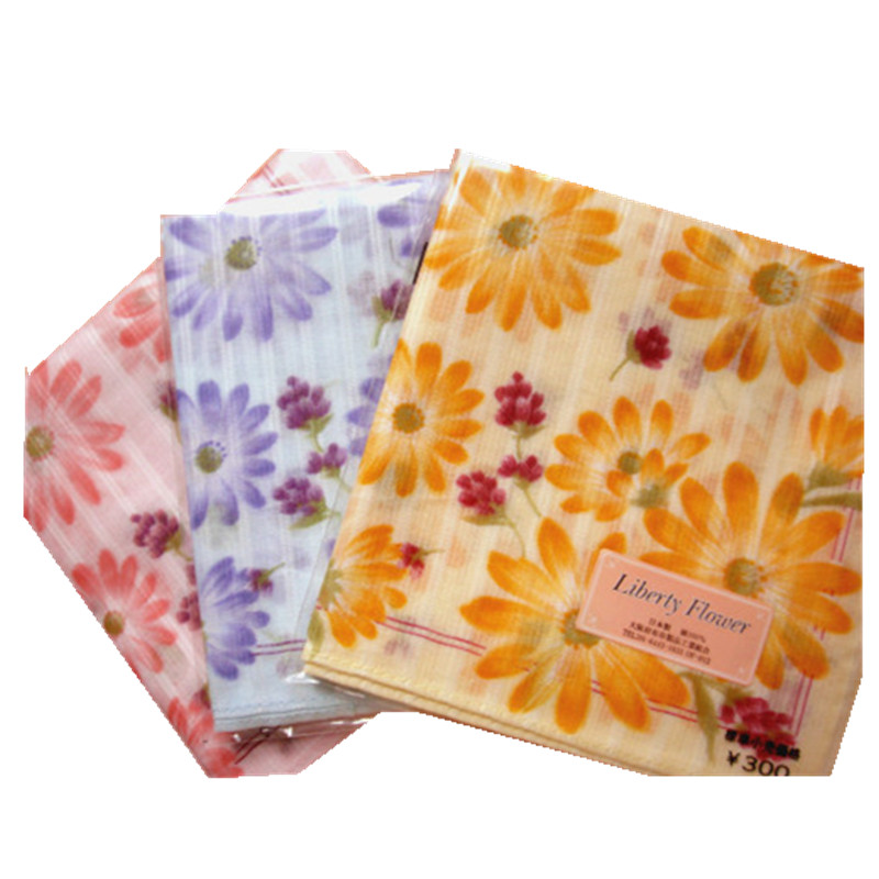 Japan's new yellow blue daisy, Japan-ROK fragrants small handkerboard Pflower full cotton ladies printed soft handkera