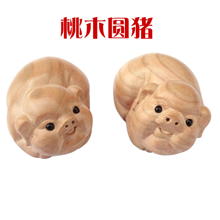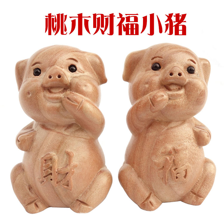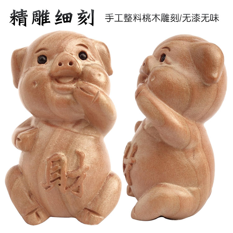 Peach Wood Small Pig Swing Piece Living Room On-board Pair Cute Solid Wood Creative Desktop Home In-car Ornament Handlebar Pendant