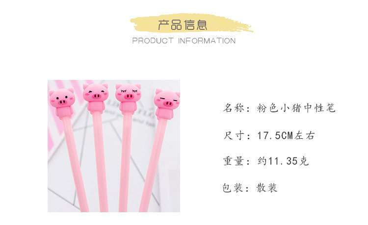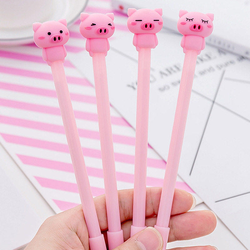 Clear Barn Student Office Black Water-based Pen Signature Pen Stationery Supplies Cute Cartoon Pink Nerd Piggy Pen