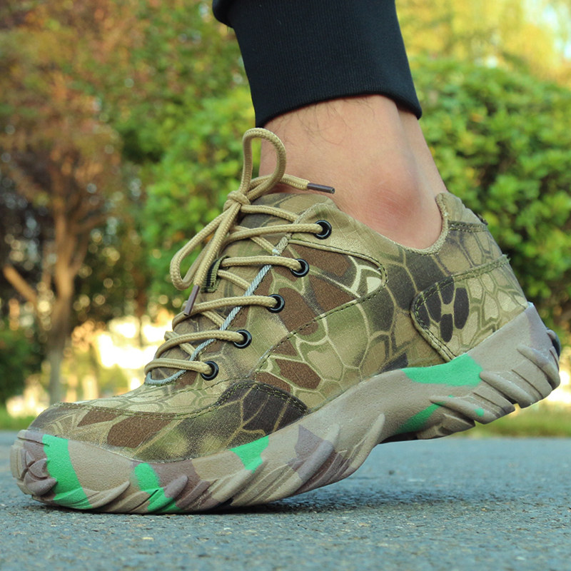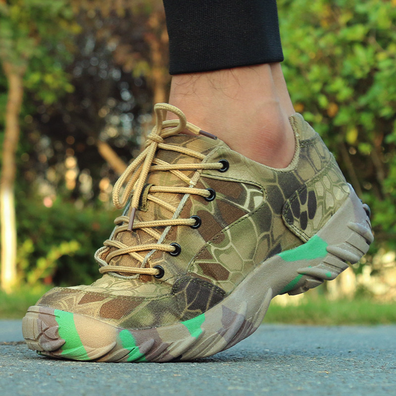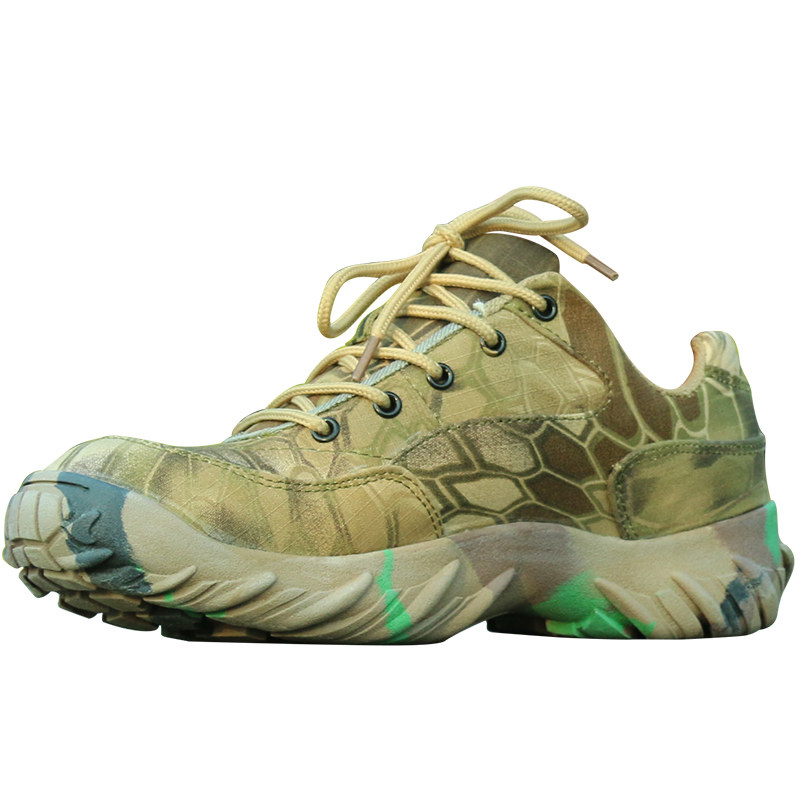 Autumn new python pattern low-top camouflage shoes men's special forces combat boots women's outdoor hiking shoes ultra-light and breathable