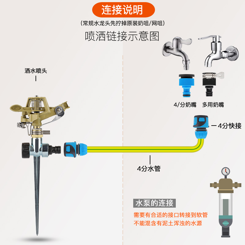 Sprinkler irrigation sprinkler agricultural green sprinkler 360 degree automatic rotation rocker arm watering sprinkler irrigation artifact lawn