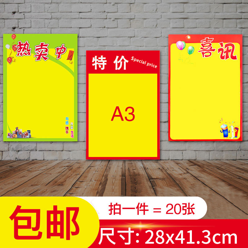 A3 poster paper advertising paper wall stickers large outdoor clothing store custom promotional paper pop handwritten supermarket double-sided handwritten promotional specials sign explosion stickers custom printing blank pharmacy price tag