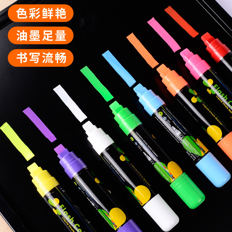 Fluorescent board special pen LED electronic luminescence small blackboard water-based note pen color billboard pen 10MM large capacity white board pen coarse plate pen POP pen wide head glass writing silver light plate flash