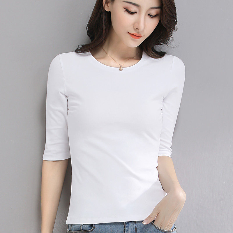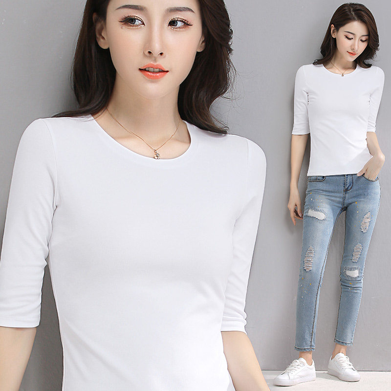 white middle sleeve three-point sleeve t-shirt women's Korean slim summer 2021 new solid color short spring and summer base shirt