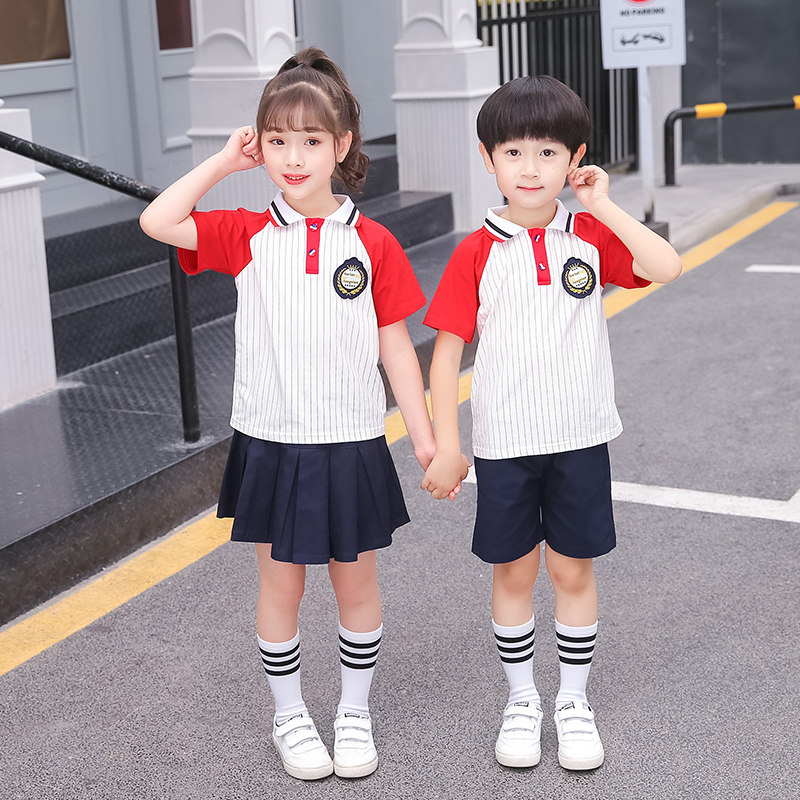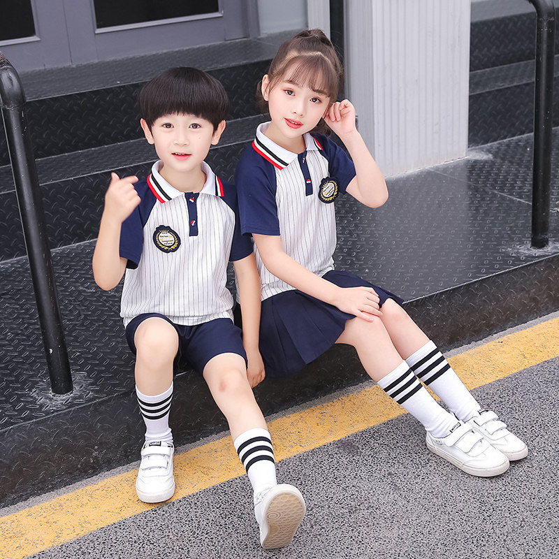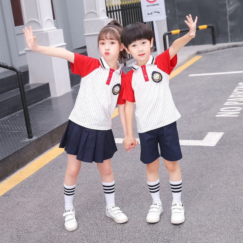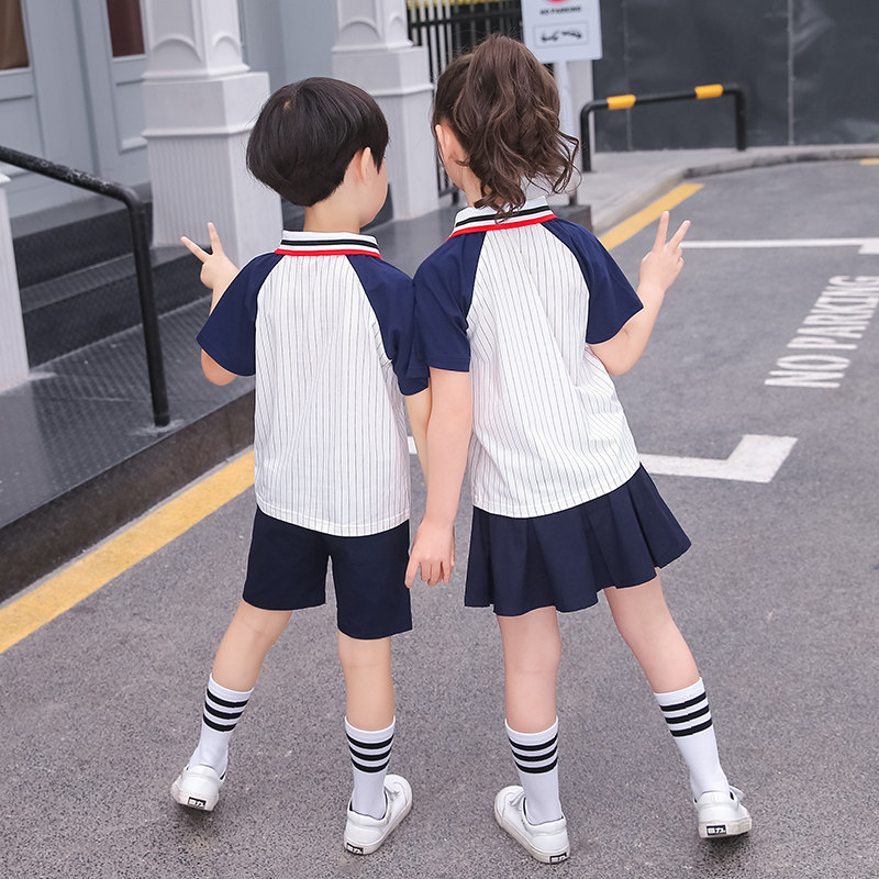 Primary school uniforms for summer clothes graduation performance class clothes suit short sleeves Inn College Wind Two sets of kindergarten garden clothes