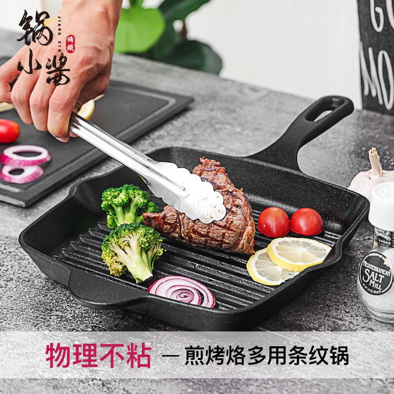 Pan Small Saucepan Steak Pan Cast-iron Pan Striped Steak Pan Flat Bottom Pan Not Stick With Pan Fried Steak Special No-Coated Frying Pan