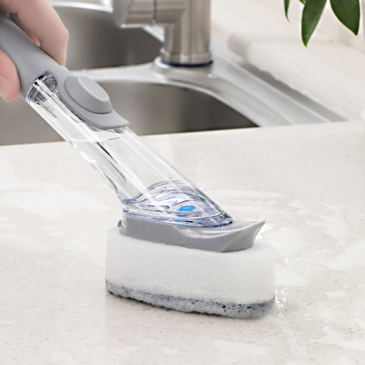 Kitchen Automatic Dosing Pan Brush Long Handle Brushed Home Multifunction Unhurt Hand Press Dishwashing Brush Decontamination Cleaning Brush