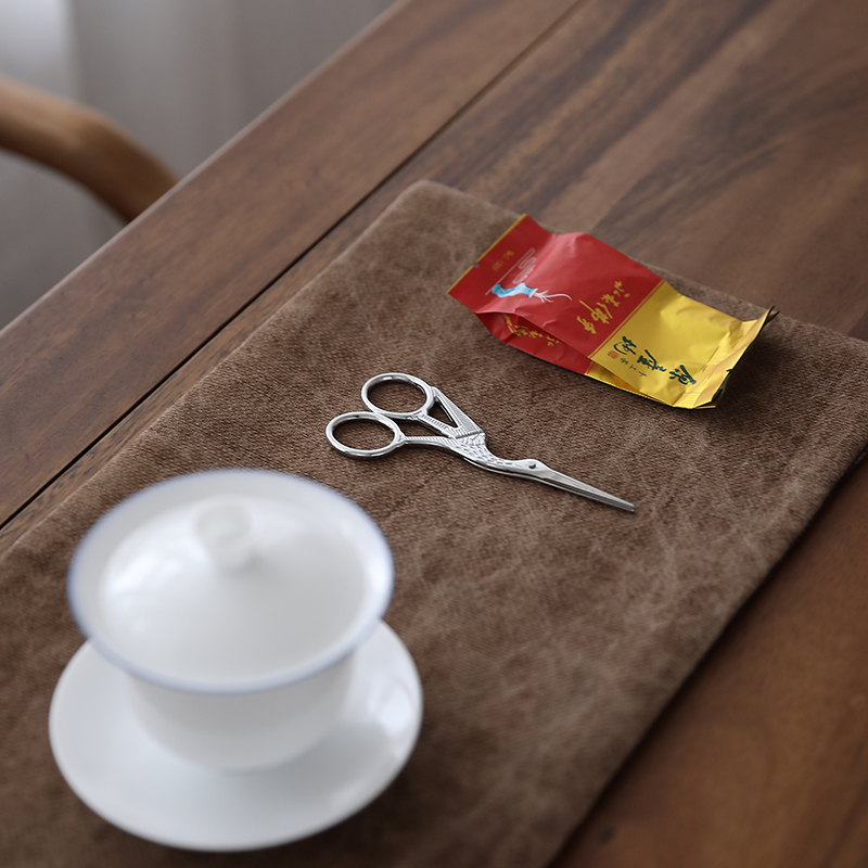 Japanese retro crane-shaped scissors Tea packaging bubble bag Titanium plating Tea art Kung Fu tea accessories Tea ceremony accessories