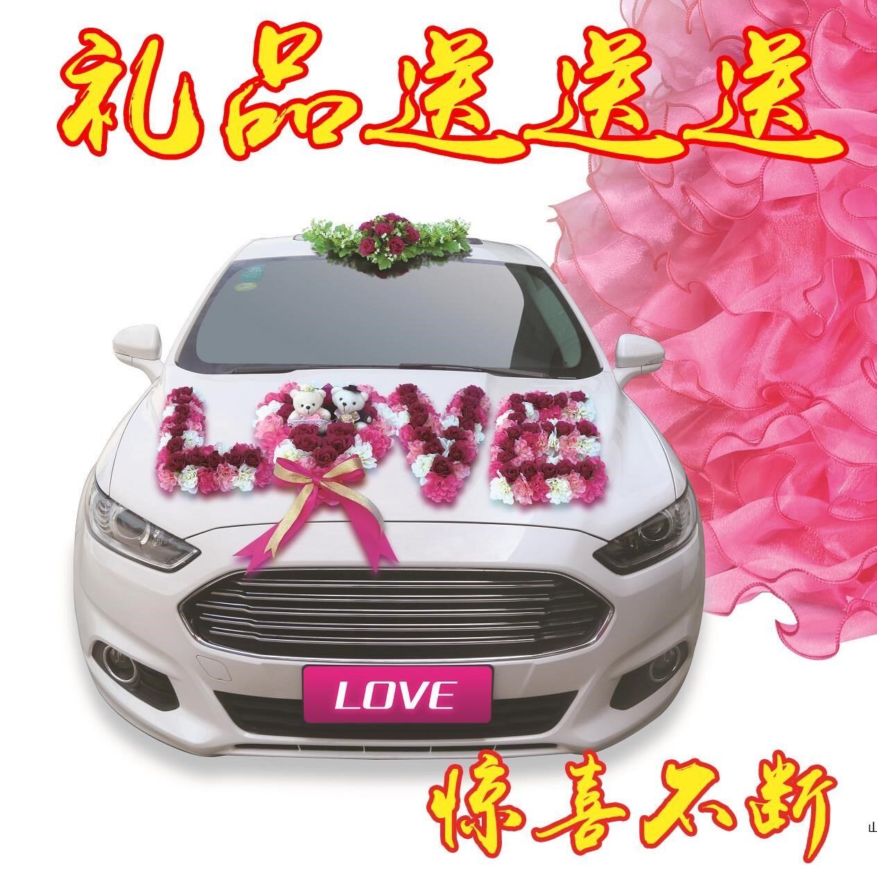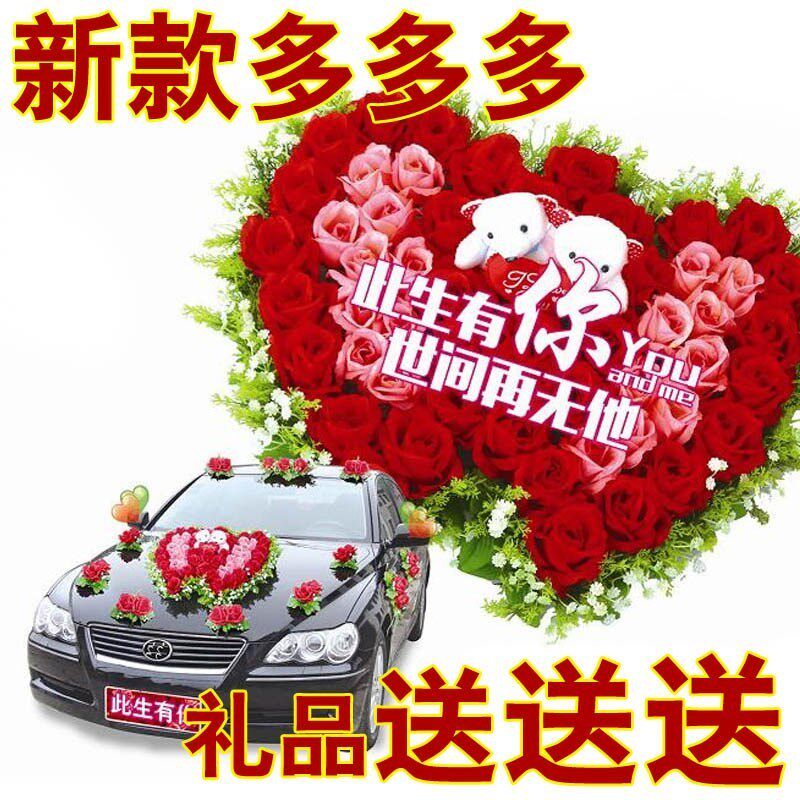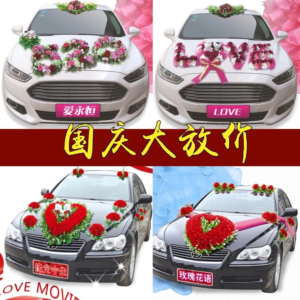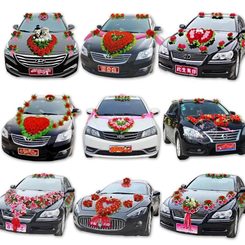 Wedding bride red black simple lollipop wedding car front full set main wedding car decoration front
