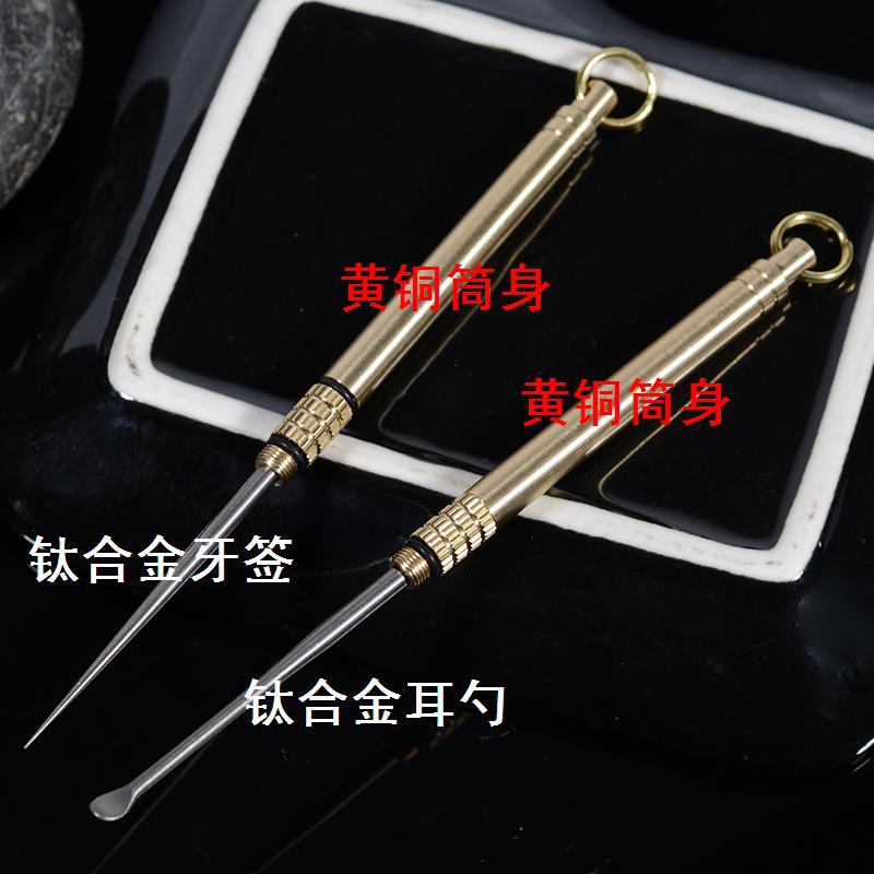 Brass waterproof bin EDC titanium alloy toothpick combination one-piece toothpick tube Titanium alloy ear spoon combination brass tube body