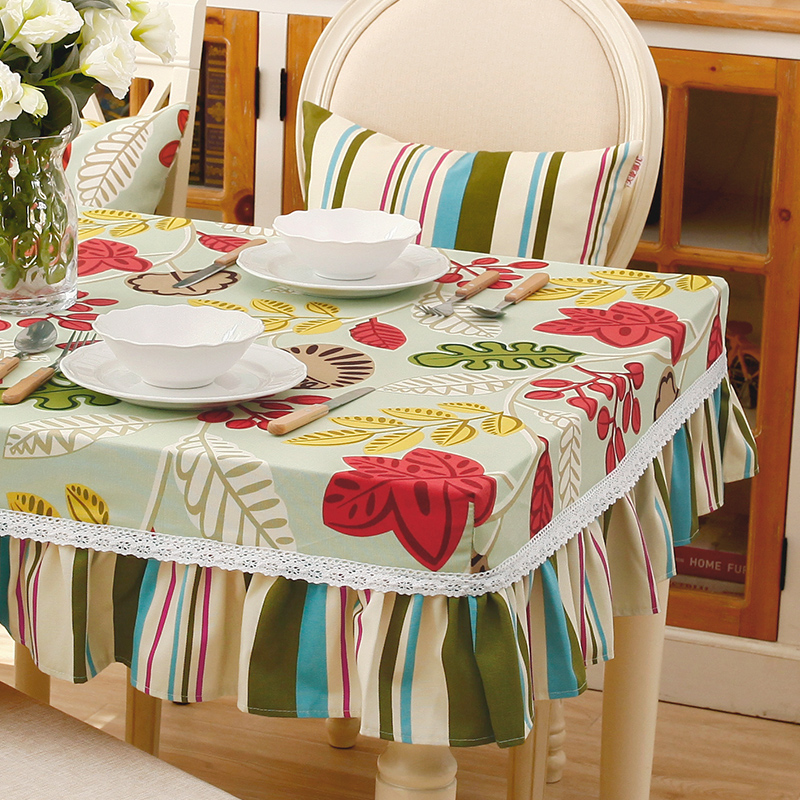 Table cloth round square table cover chair cover set American pastoral household cotton table table cloth cover cloth