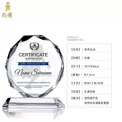 Crystal trophy creative medal customization Honor authorization card Agent leading dealer franchise card certificate customization