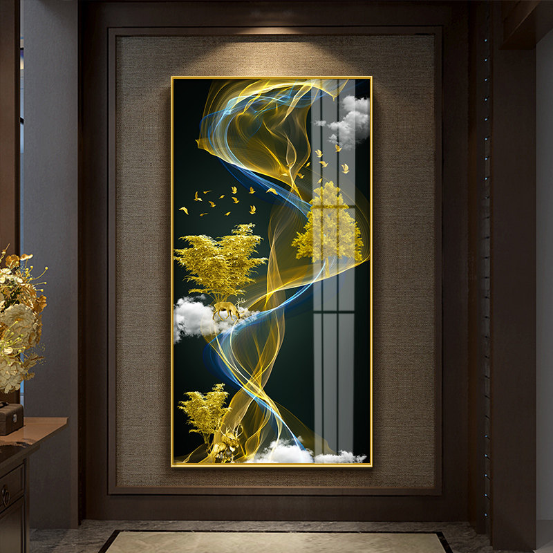 Entrance to the family Xuanguan Decorative Painting Modern Minimalist Entrance Door Mural Veranda Hallway Veranda Hallway end hanging painting light and luxurious crystal porcelain painting