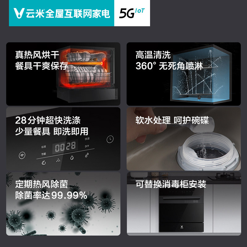 Yunmi automatic dishwasher Household small embedded 8 sets of rice home APP intelligent antibacterial hot air drying one