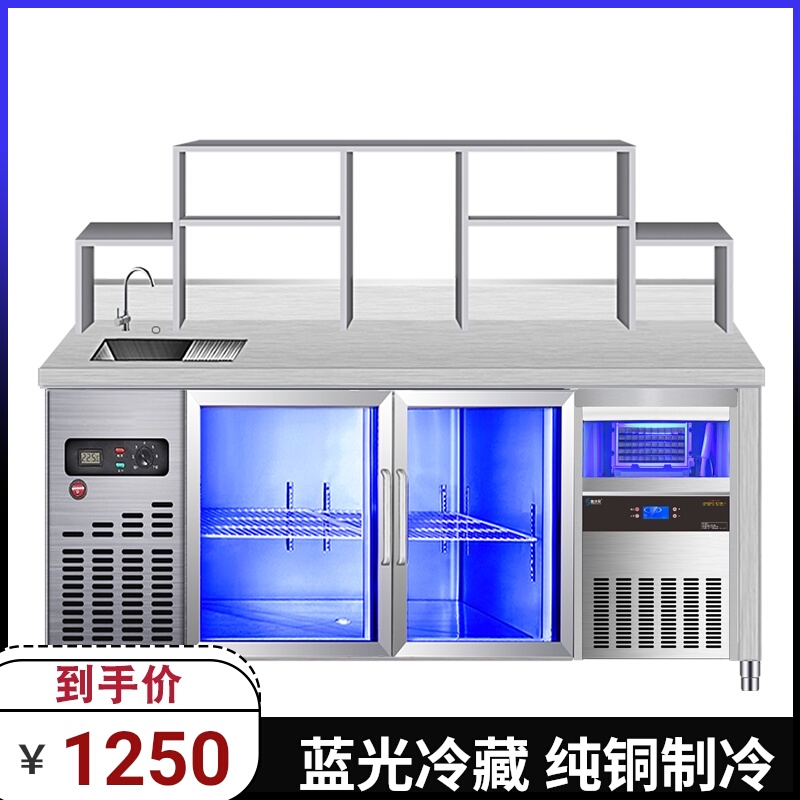 Snow Ice Springs Milk Tea Equipment Complete commercial water bar Frozen Blue Light Operating Platform Stainless Steel Refrigerated Worktop
