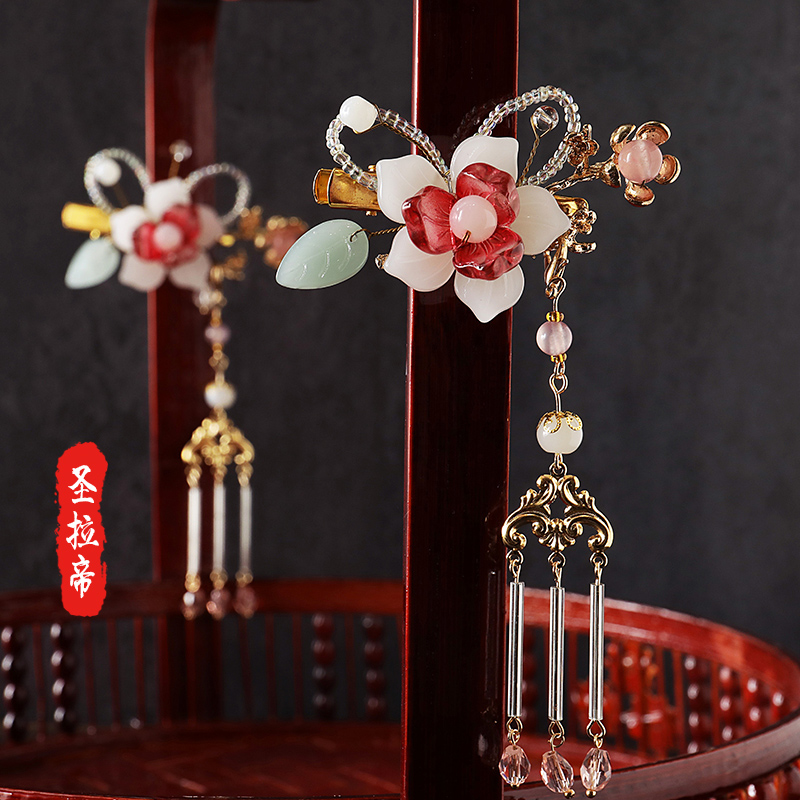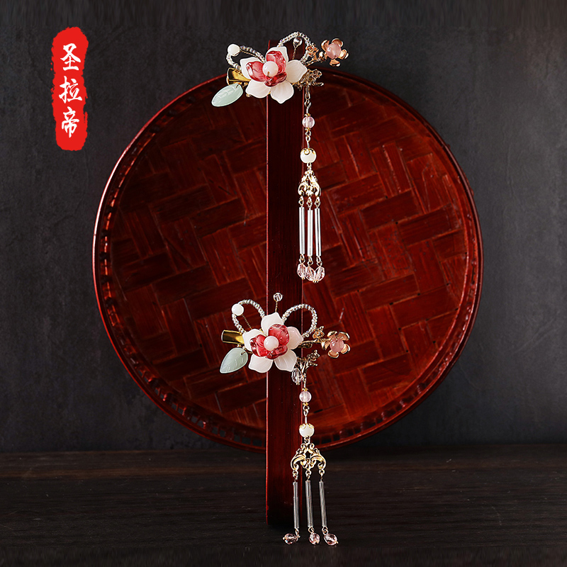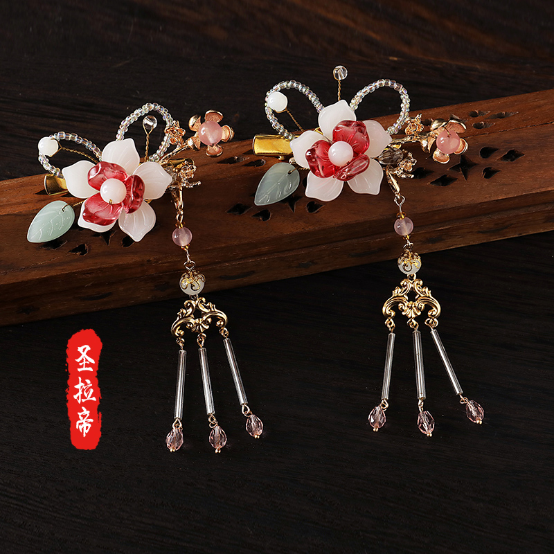 Hanfu headdress children fringe step shake on hair pin super fairy red girl antique girl flower hairpin