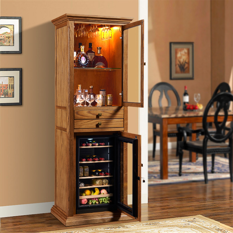 Jinzhuang red wine cabinet refrigerated solid wood home living room ice bar storage constant temperature wine cabinet red wine insulation cabinet high-end