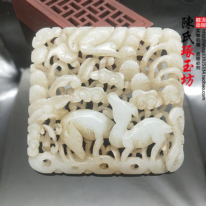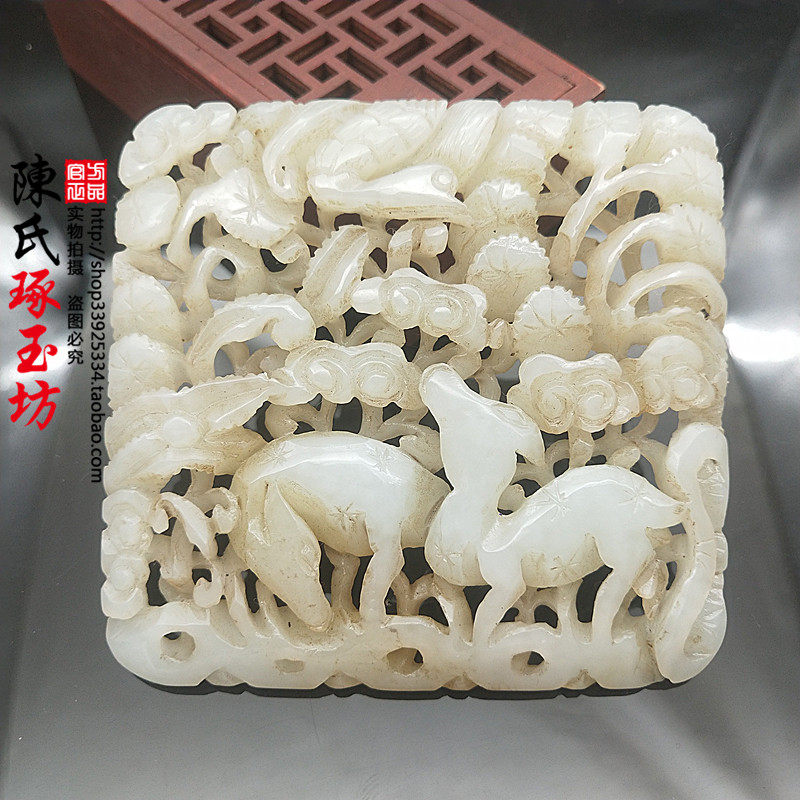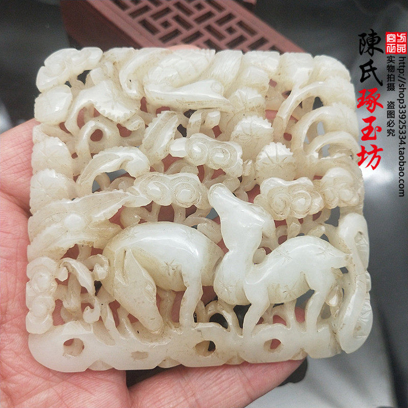 Hawa Tian Yuku plays jade hollow brand inlaid with ancient jade jade embedded on brow-mounted pizza deer jade