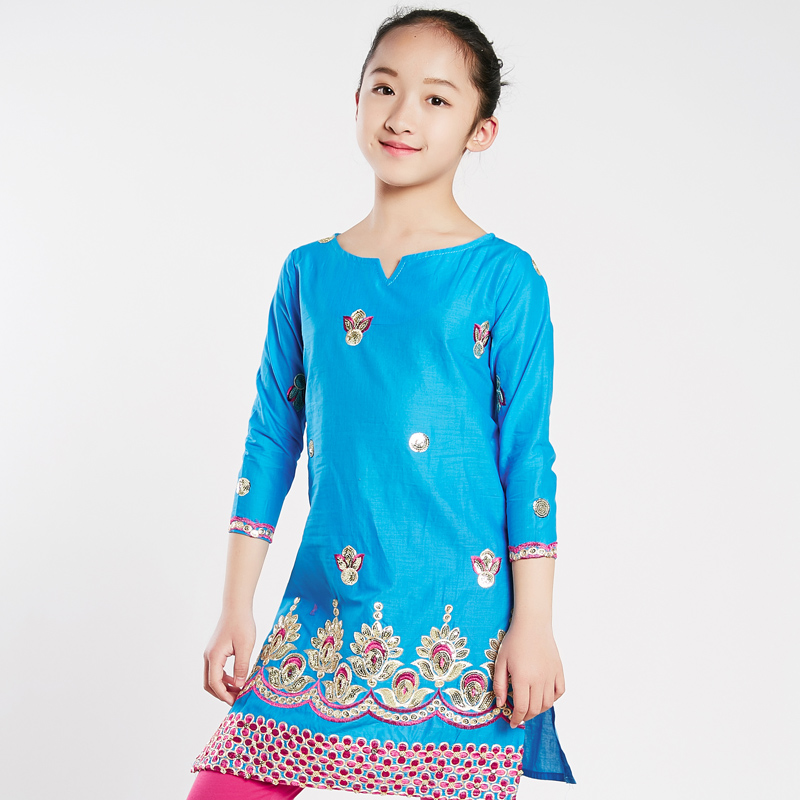 Indian girls' pure cotton embroidery middle and long sleeves side cover saree Anna dance clothing Nepalese ethnic style children