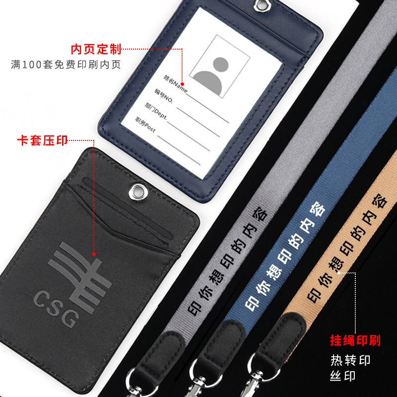 First layer cowhide certificate card set badge set genuine leather chest card sleeve bus card meal card set work card with lanyard custom leather work card unit job badge factory card with round suspension rope