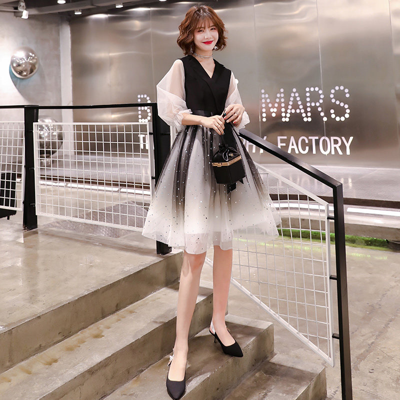 Black Little Evening Gown Dress Lady Gas Field Queen lean party Ocean dress Dress Normally can wear short host