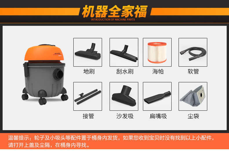 Yili Industrial household mute large capacity high power dry and wet dual-use handheld barrel machine YLW6238E-15